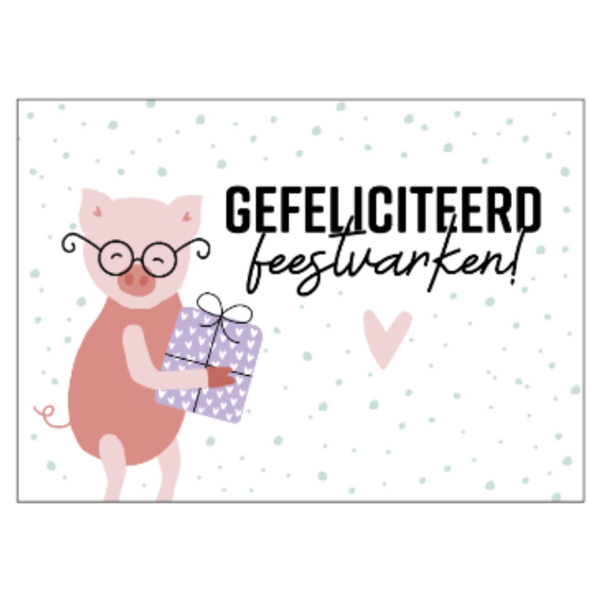 Gefeliciteerd het feestvarken is jarig! Combineer deze kaart met één van onze leuke cadeautjes en de cadeau-verstuur-service!