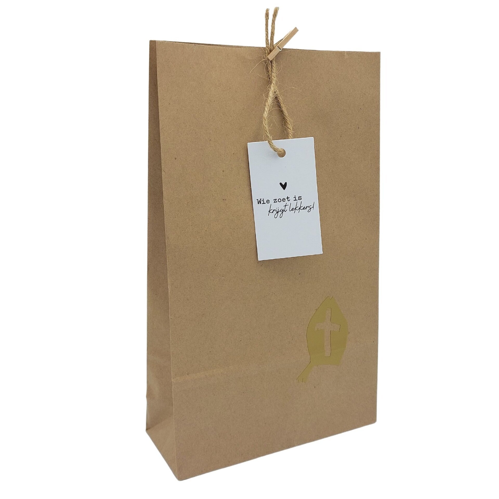 🖤 1 Blokbodemcadeauzak - Gouden Mijter - 15 x 6 x 25,5cm