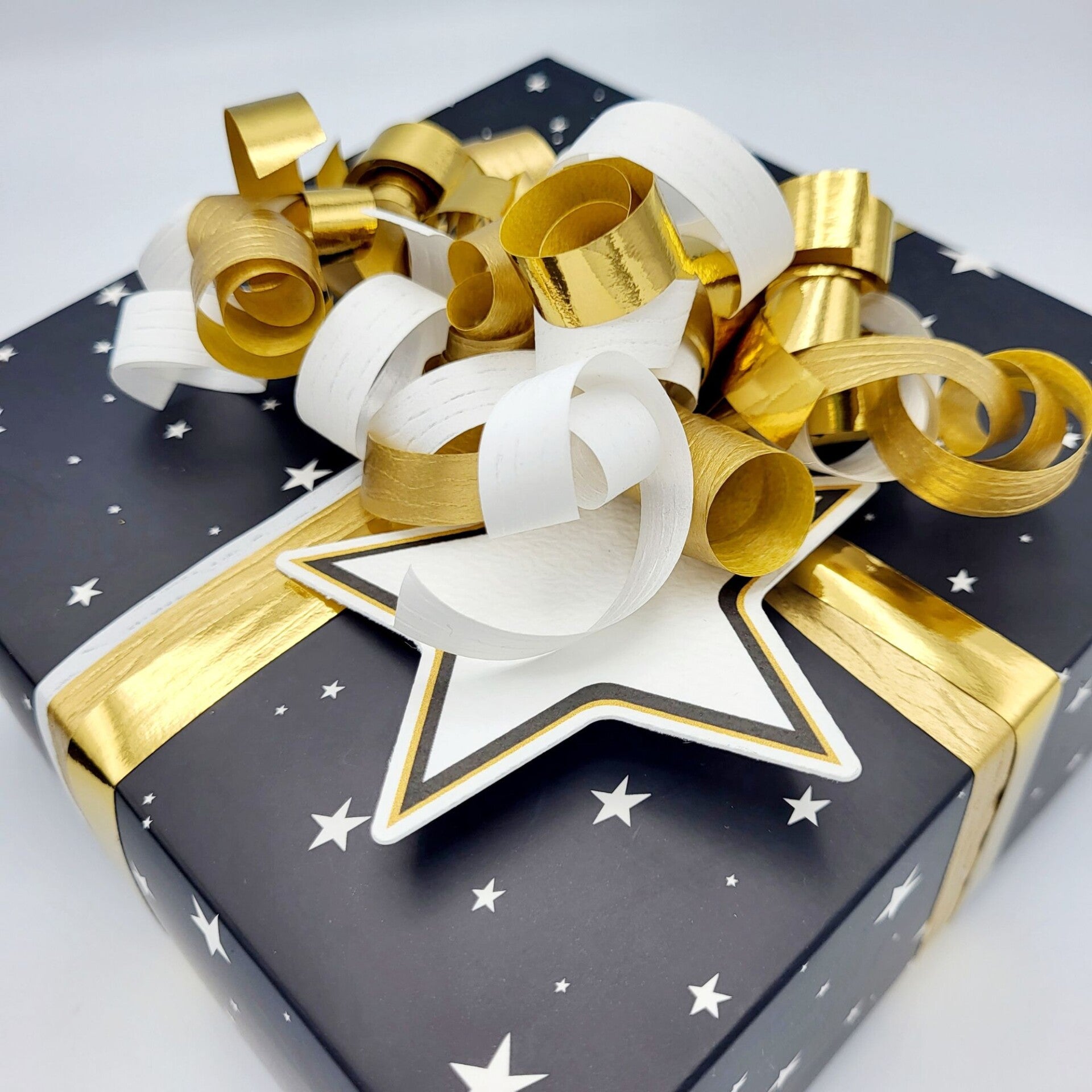 Het cadeaudoosje met sterren is gevuld met HoHo Rendier sokken, een autogeurhanger in de vorm van een kerstboom en 2 kleine dinerkaarsen. Het kerstpakket is samengesteld op kleur en wordt ingepakt als een echt cadeau, voorzien van een flinke bos krullint en een cadeaukaartje met plek voor een korte, persoonlijke boodschap.