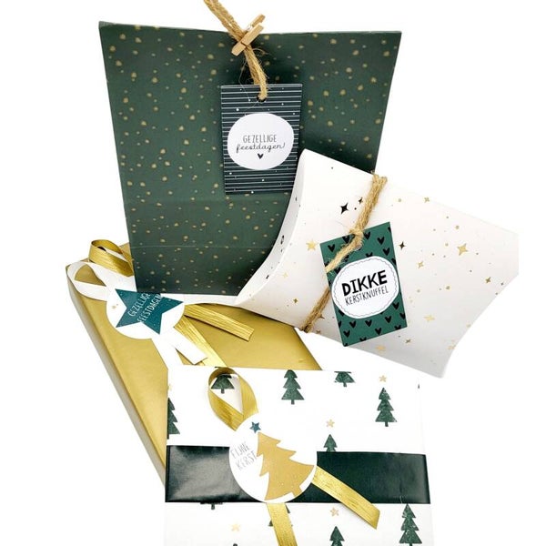 Met deze 35-delige set pak je de allermooiste kerstcadeautjes voor onder de boom in. Deze set hebben wij met zorg samengesteld in de bijpassende kleuren groen en goud!