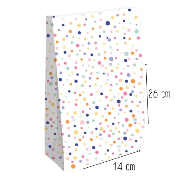 Met deze extra stevige papieren kraft zakken kan het feest beginnen!De leuke confetti print maakt het ook erg leuke zakjes om te gebruiken als traktatiezakjes. Tip! In de shop vind je ook confetti cadeaupapier én cadeaulabels!