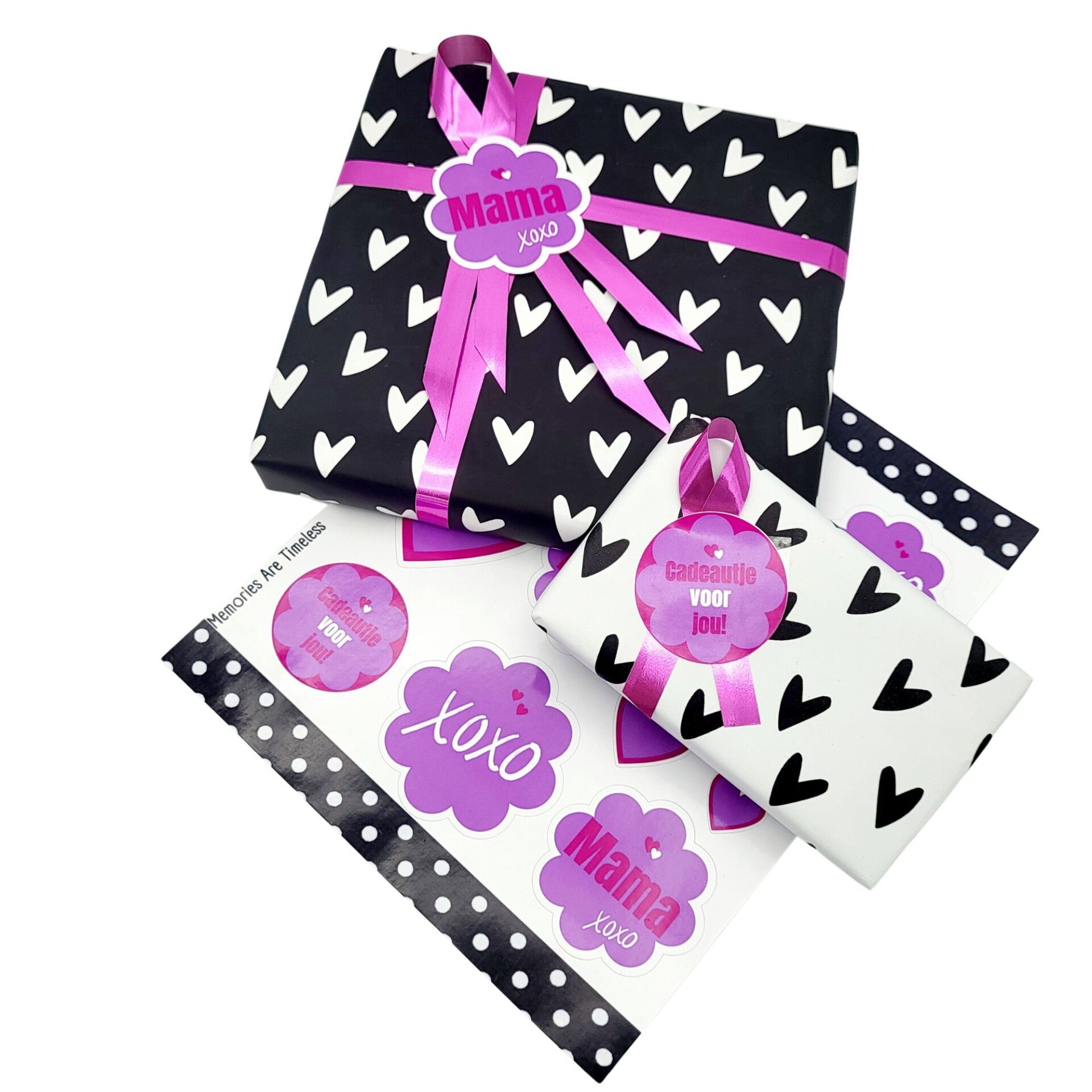 Kies voor neutraal cadeaupapier en maak jouw cadeautje verbluffend mooi met deze leuke cadeaustickers en bijpassend krullint.
