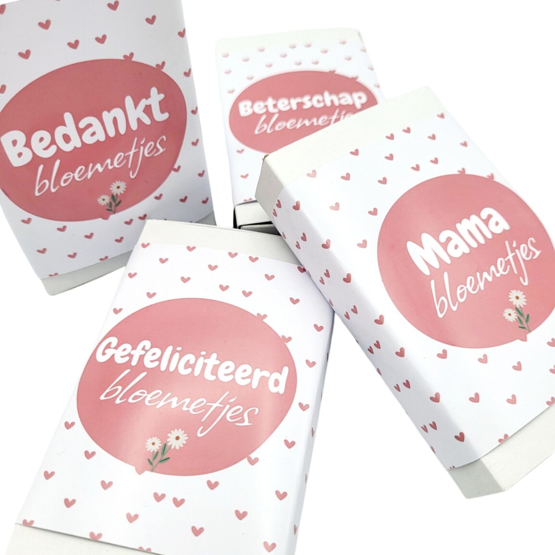 Je zegt het met een bloemetje! En deze bloemetjes zitten in een leuk doosje en kunnen dus gewoon door de brievenbus bezorgd worden.