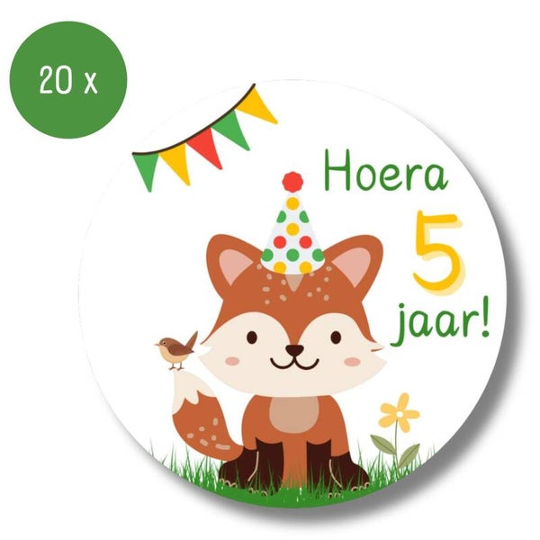 Stickers | 5 jaar | Verjaardag | Vos | 20 stuks