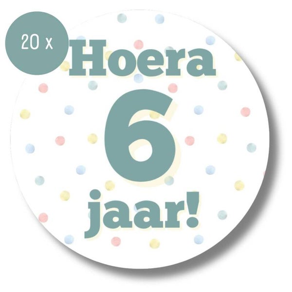 Stickers | Hoera 6 jaar | Verjaardag | 20 stuks