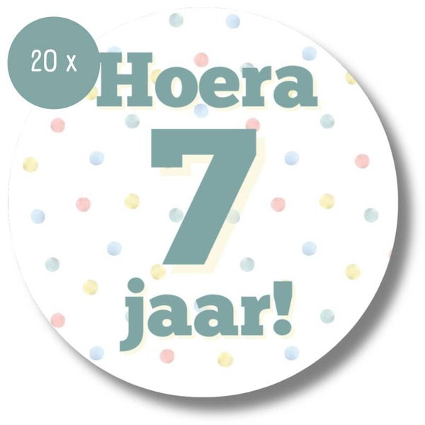 Stickers | Hoera 7 jaar | Verjaardag | 20 stuks