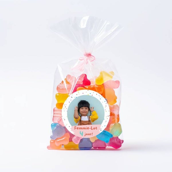 Met deze traktatiestickers maak je wel echt een unieke traktatie! Upload de leukste foto van de jarige en wij maken er mooie stickers van.
