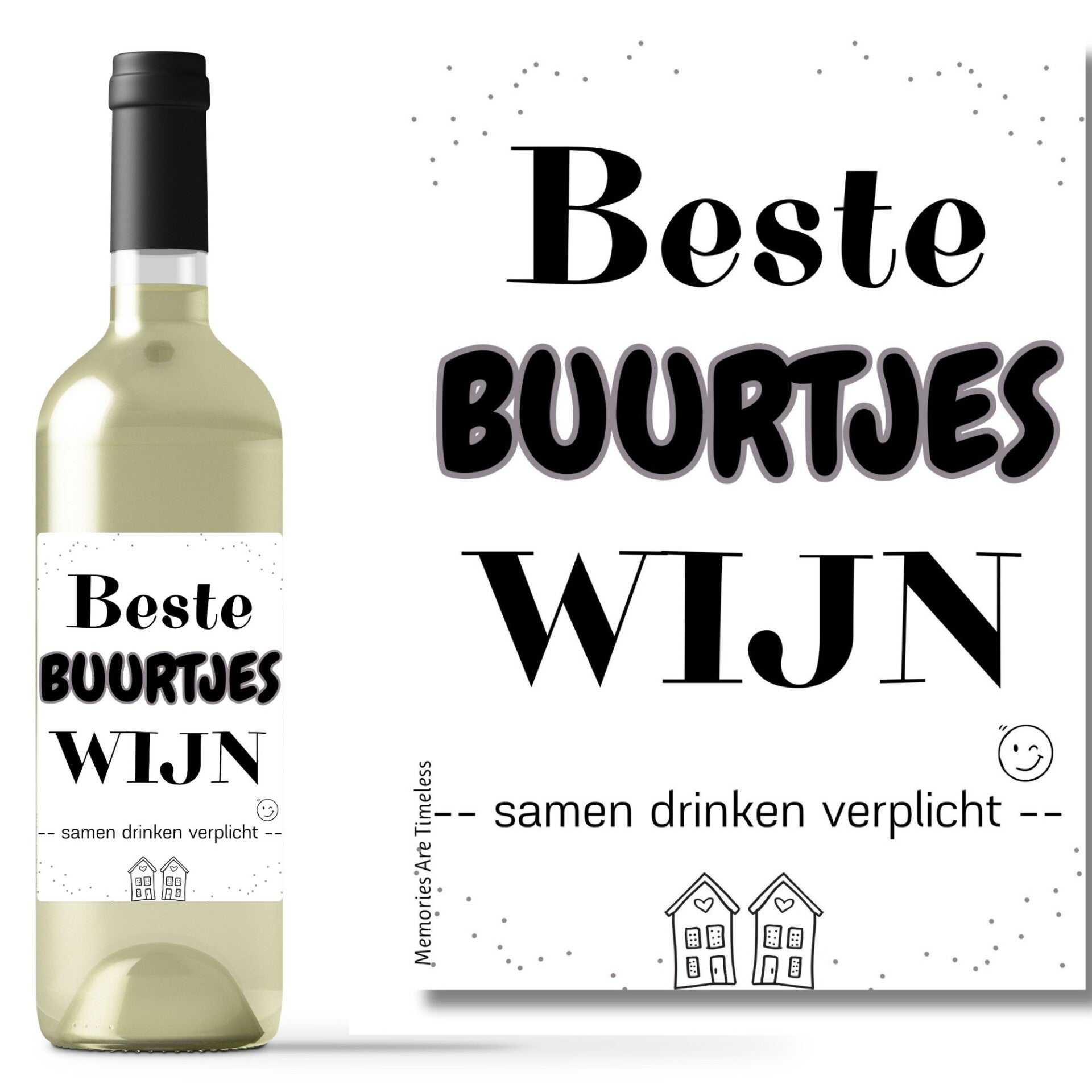 ✨ Tip: Wil je liever meteen een compleet cadeau geven? Kies dan voor onze Beste Buurtjes wijn cadeau variant – hierbij ontvang je een fles wijn (wit, rosé of rood) met jouw gekozen etiket al mooi op de fles geplakt. Superleuk om direct te versturen!