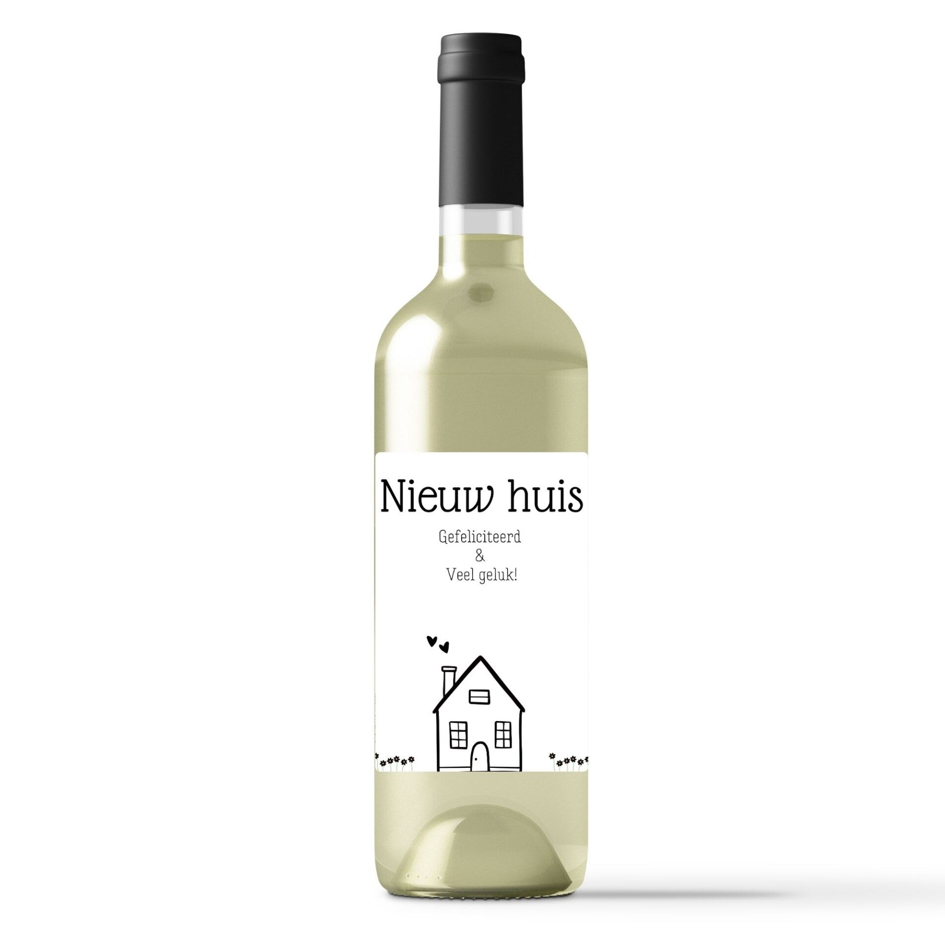 Wijnetiket | Nieuw huis | Gefeliciteerd & Veel geluk | Personaliseren mogelijk