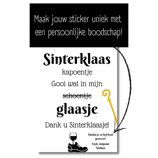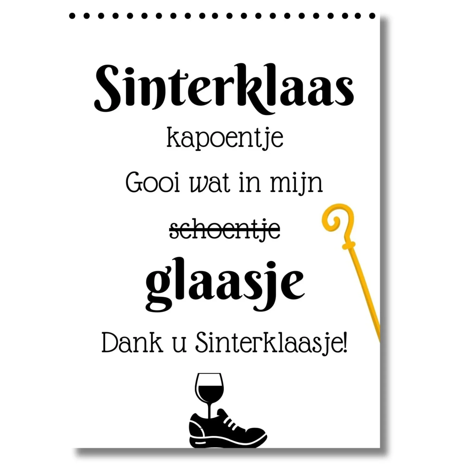 Ken je dat leuke Sinterklaasliedje? Persoonlijk vinden wij deze tekst beter ;) Met dit wijnetiket, Sinterklaas Kapoentje, gooi wat in mijn glaasje, maak je zelf een grappig leuk cadeautje. Koop zelf de favoriete wijn en geef een uniek cadeautje op pakjesavond, tijdens suprise of gezellig in de schoen!