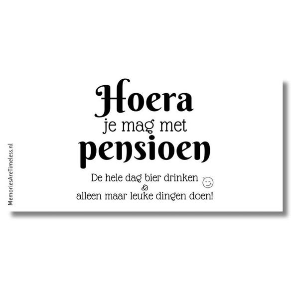 Tekst: Hoera je mag met pensioen. De hele dag bier drinken en leuke dingen doen!
