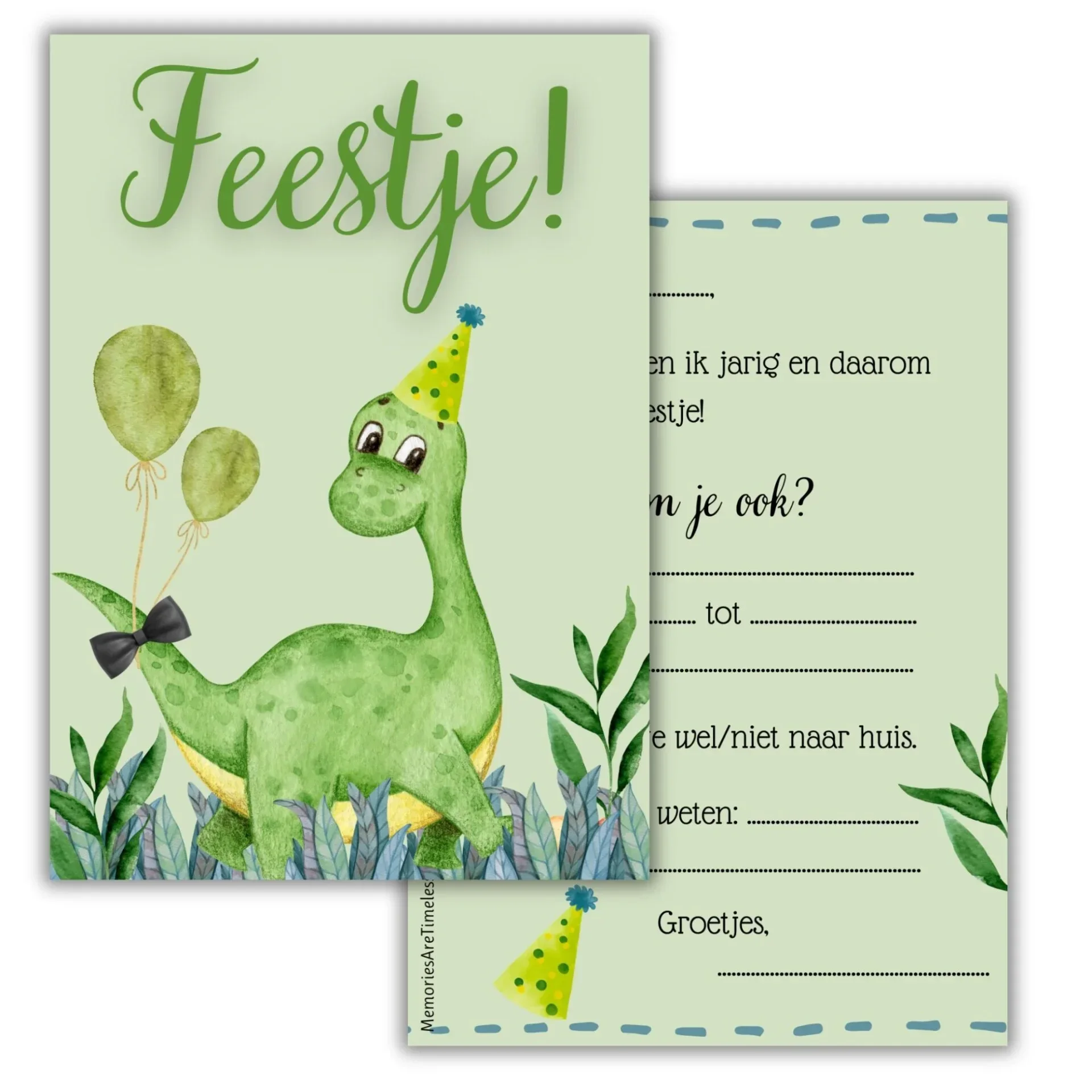 Alles wat je nodig hebt om uitnodigingen en traktaties onvergetelijk te maken, vind je in één handige set. Met een vrolijk dinosaurusthema zorg je voor een feestje dat écht indruk maakt! 🦖🎉