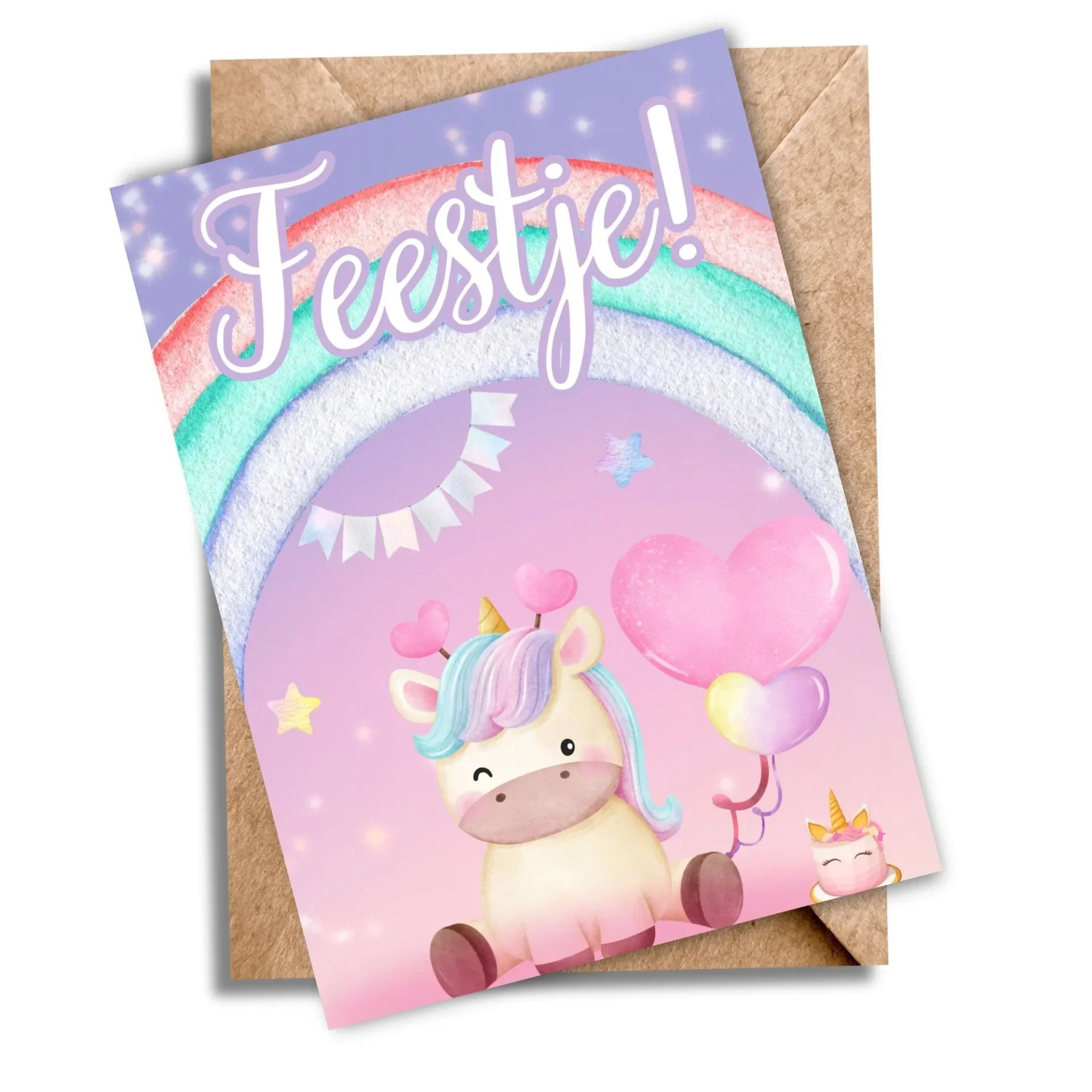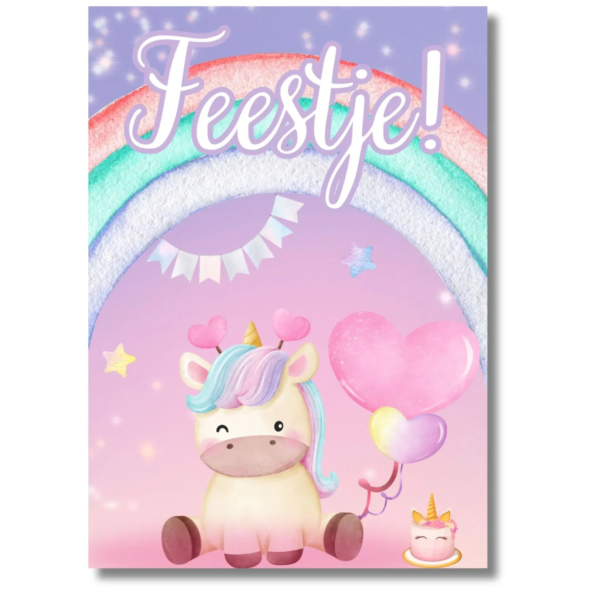 - 6 uitnodigingen met enveloppen: nodig kinderen in stijl uit met feestelijke kaarten in een vrolijk unicorn design.
