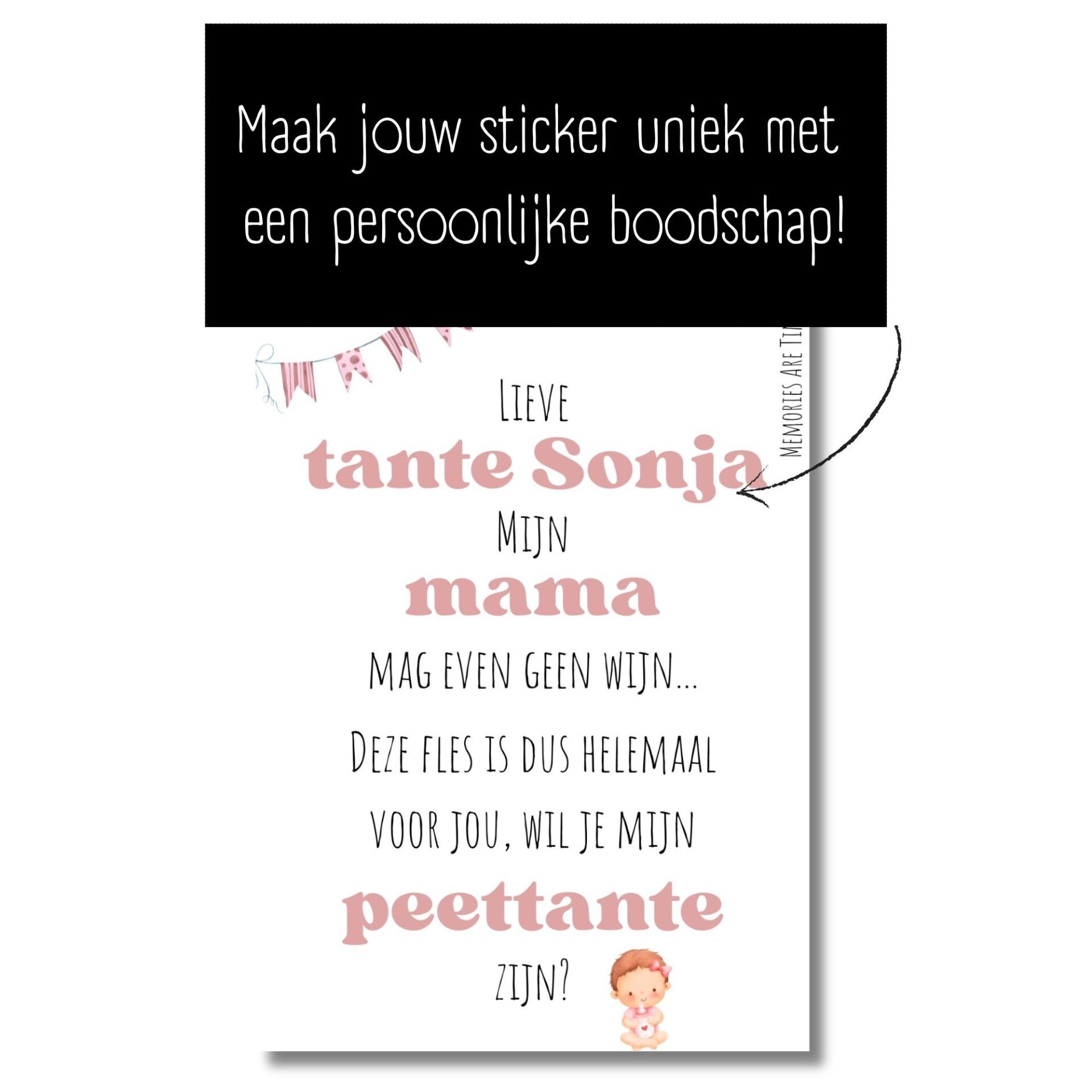 Wijnetiket | Peettante | Roze | Personaliseren mogelijk