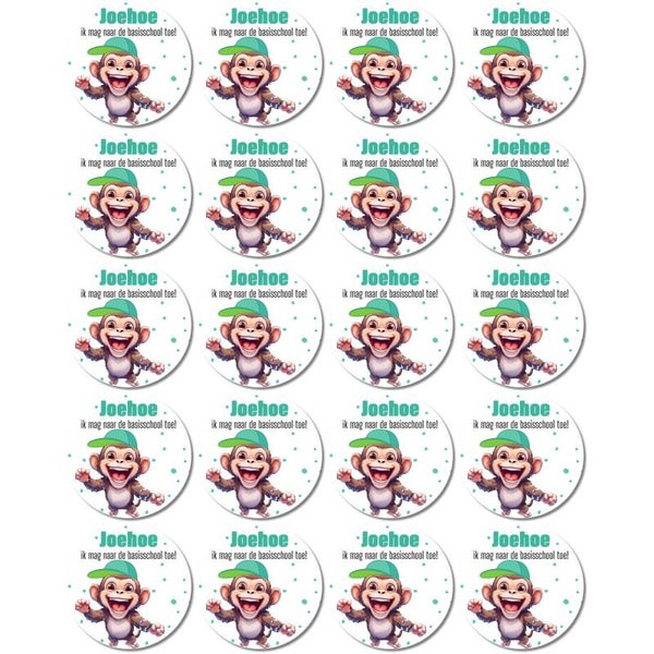 Joehoe basisschool stickers | 20 stuks | Grappige aap groen blauw | Traktatie kinderdagverblijf