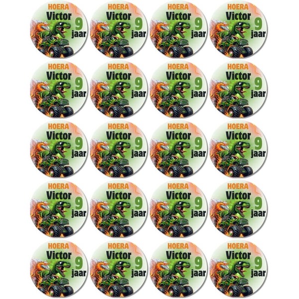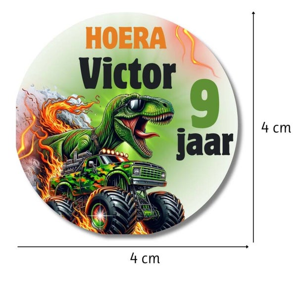 Monster truck dino stickers | Met naam & leeftijd | 20 stuks | Verjaardag jongen | Gepersonaliseerd