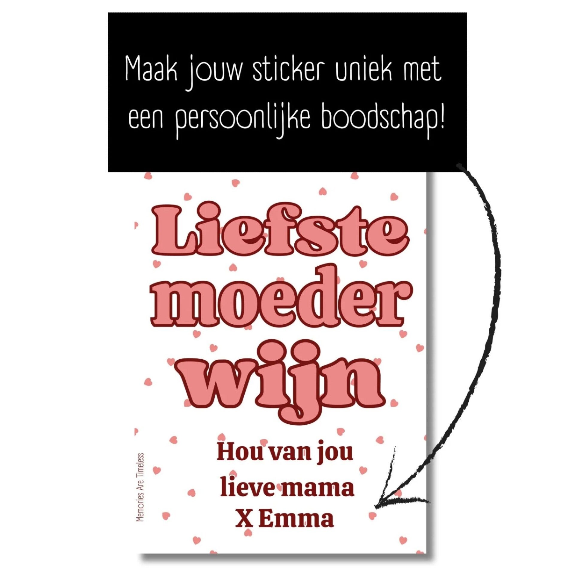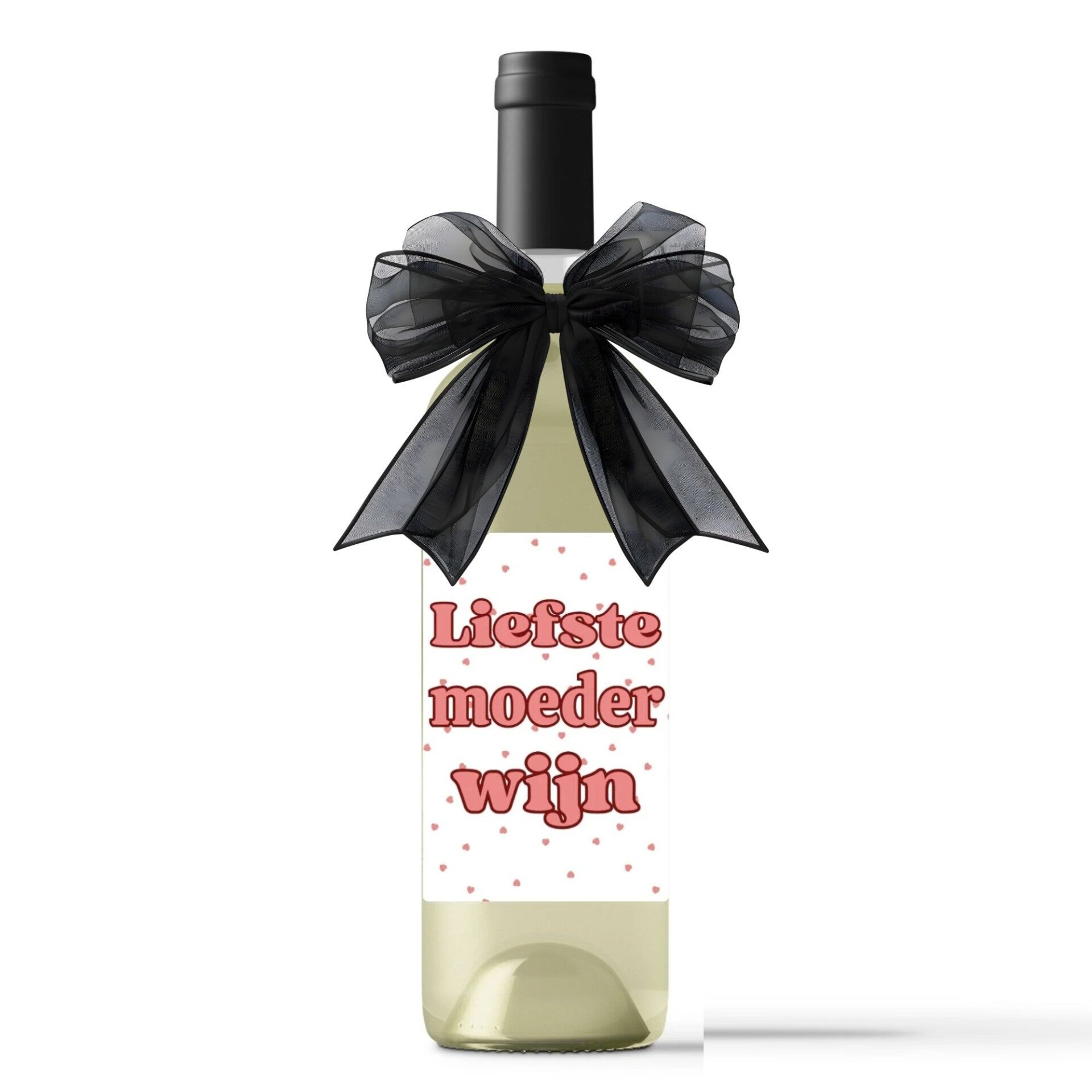 Etiket met de tekst Liefste moeder wijn en speelse hartjes