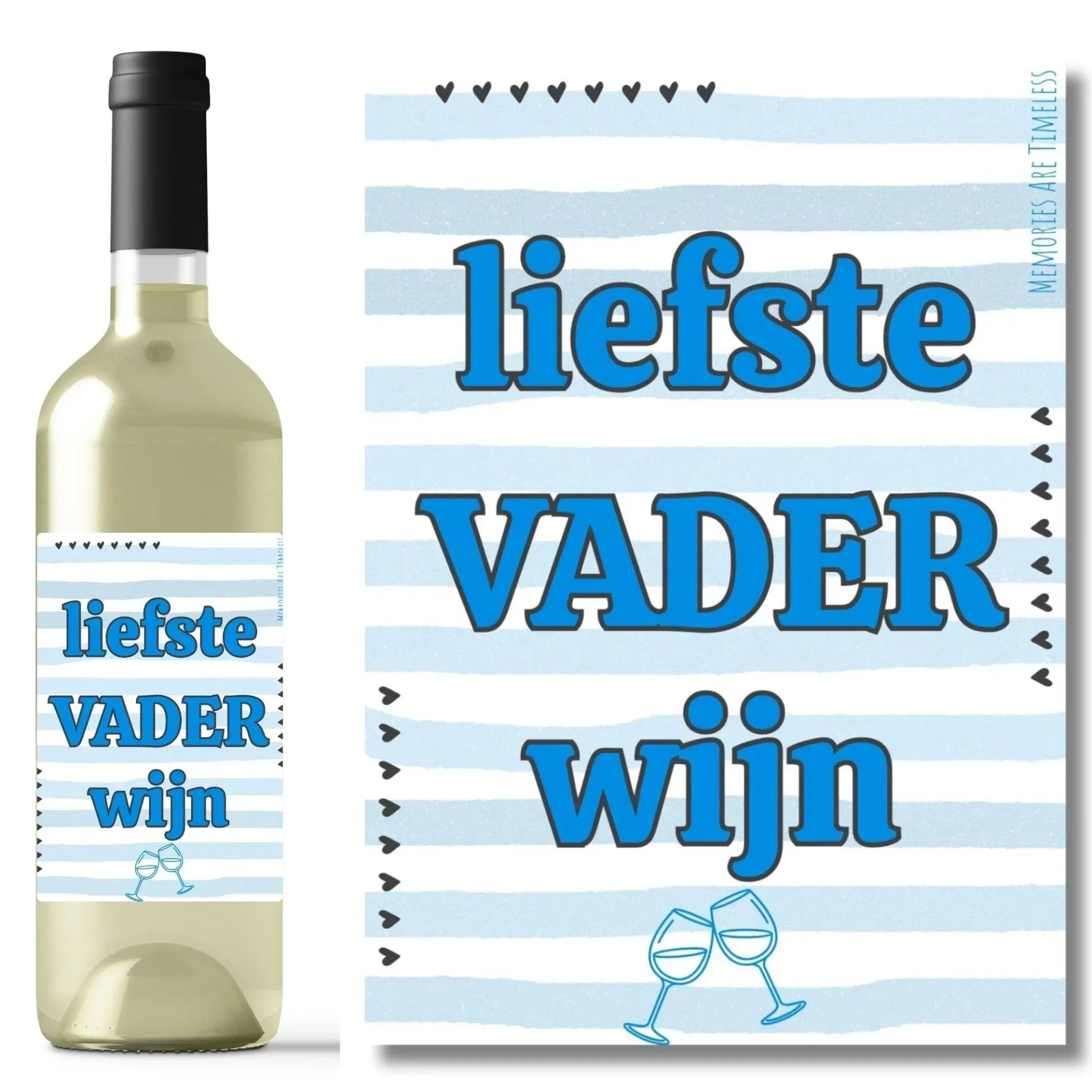 Verras je (schoon)vader, bonusvader of opa met een cadeau vol stijl en persoonlijkheid: een complete wijnfles met een uniek etiket waarop staat: "Liefste vader wijn". Een perfect geschenk voor Vaderdag, zijn verjaardag of gewoon om hem te laten weten hoeveel hij voor je betekent.