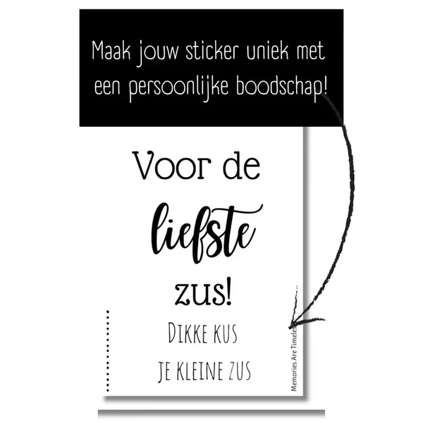 Met dit originele wijncadeau verander je een gewone fles wijn in een persoonlijk en stijlvol geschenk dat je zus met veel liefde zal ontvangen.