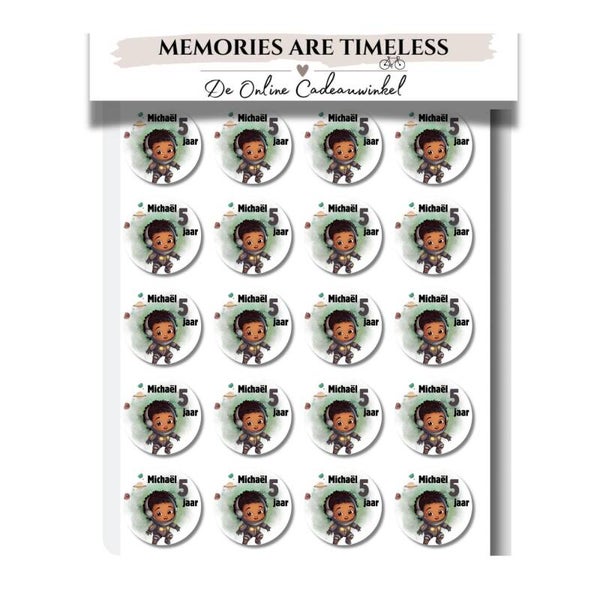 Bij je bestelling kun je direct de naam en leeftijd invullen zodat de stickers persoonlijk en uniek worden.