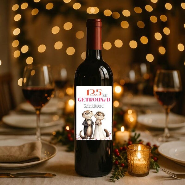- Wijnflesetiket | Fijne Kerst | Gezellig met familie samenzijn onder het genot van een glaasje wijn