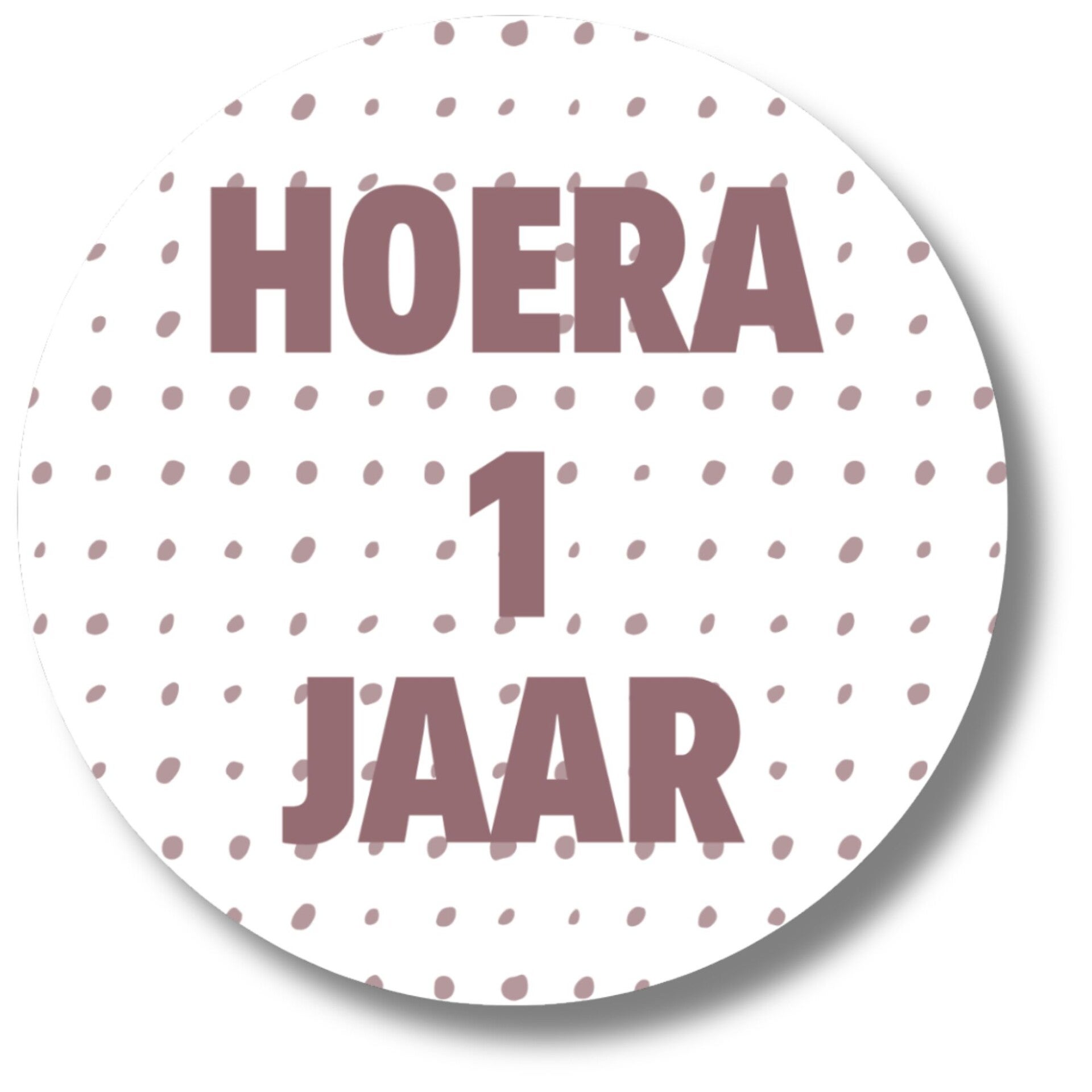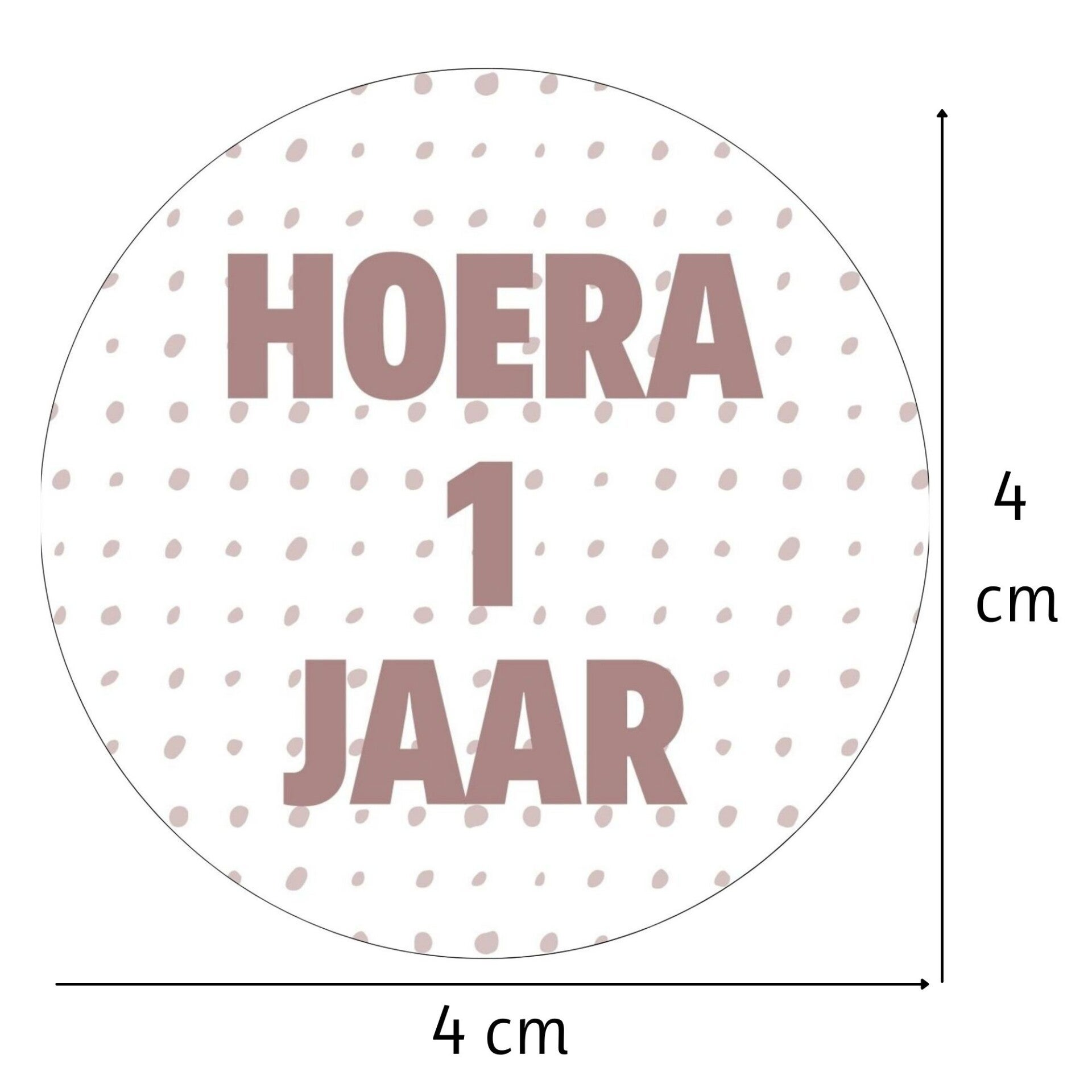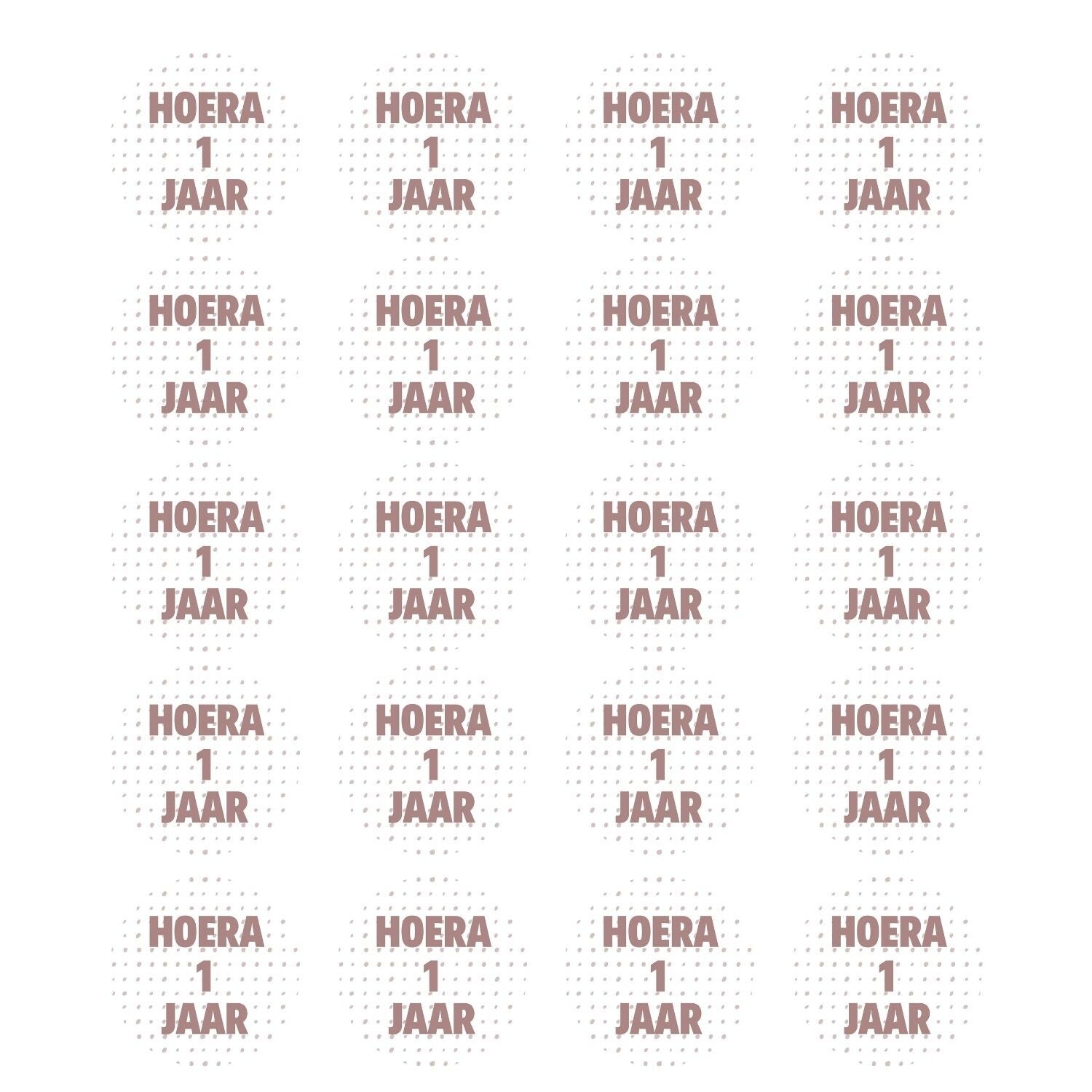Stickers | Hoera 1 jaar | Roze dots | 20 Stuks