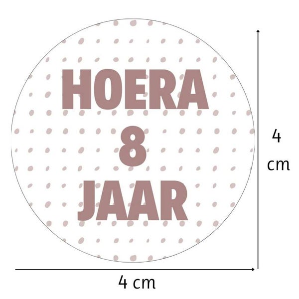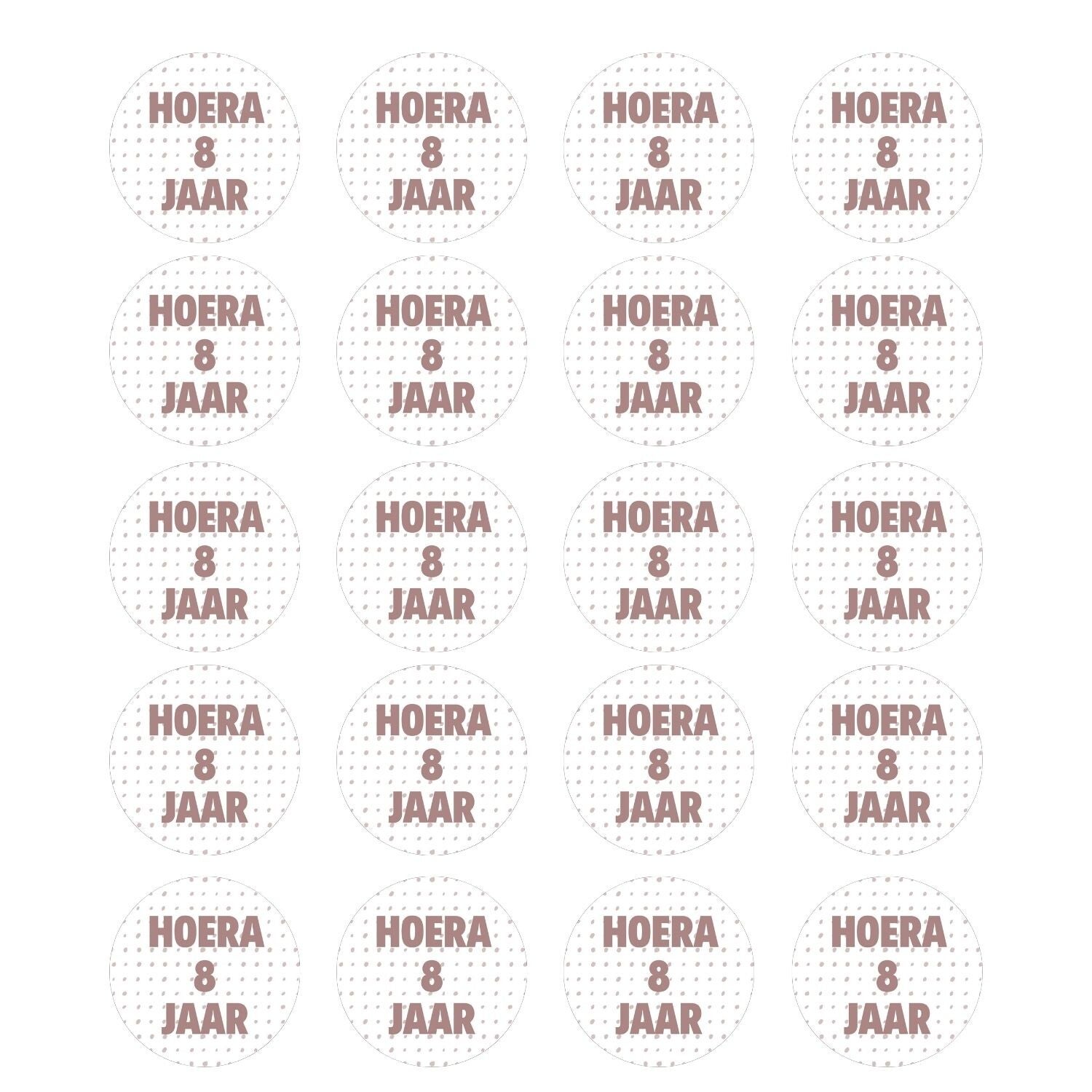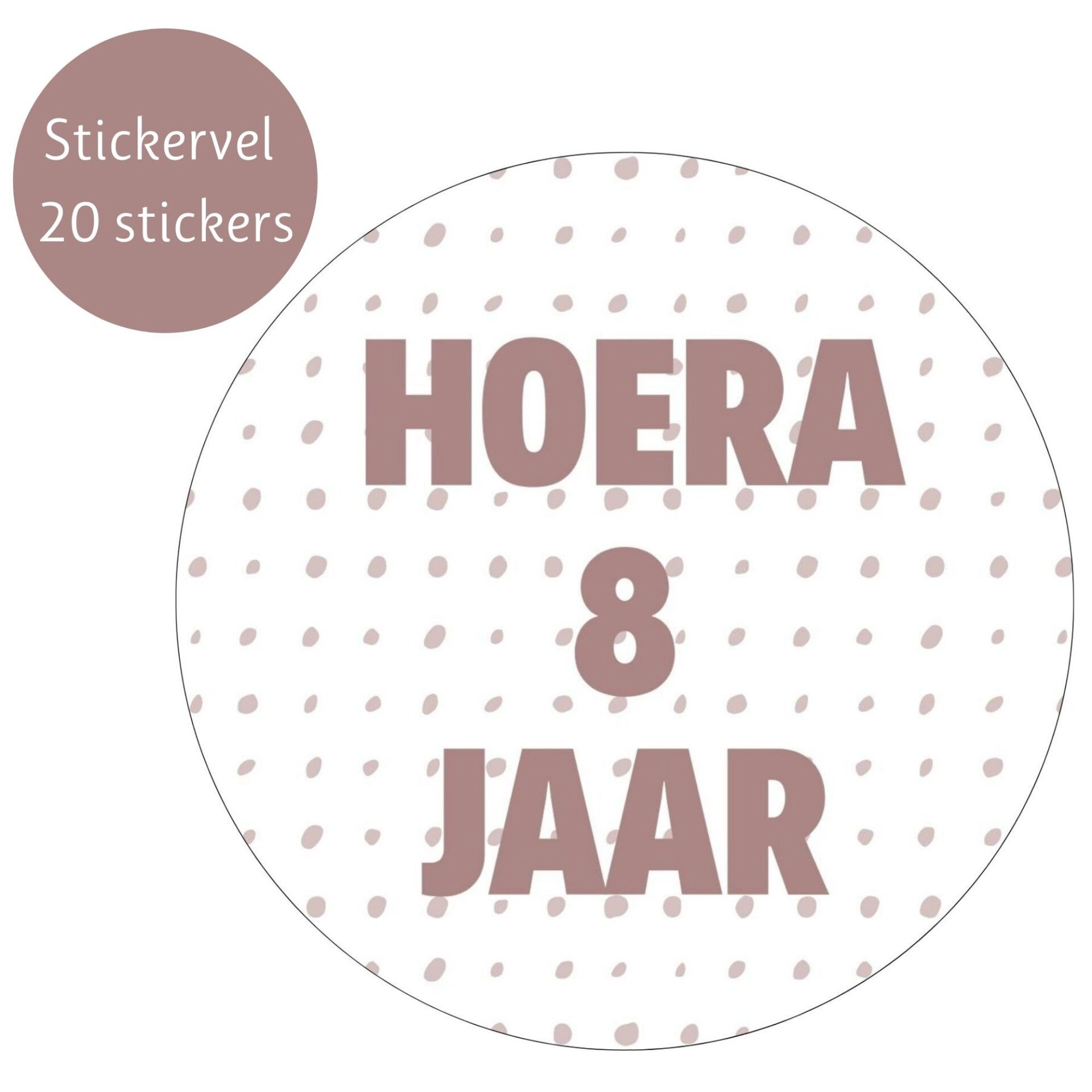 Stickers | Hoera 8 jaar | Roze dots | 20 Stuks