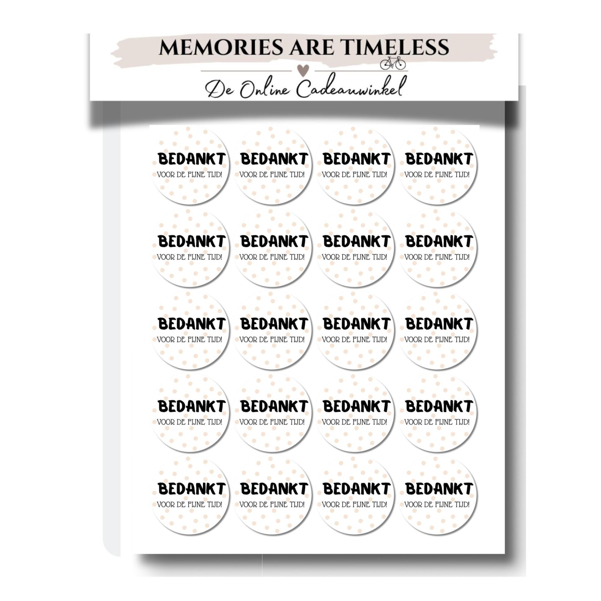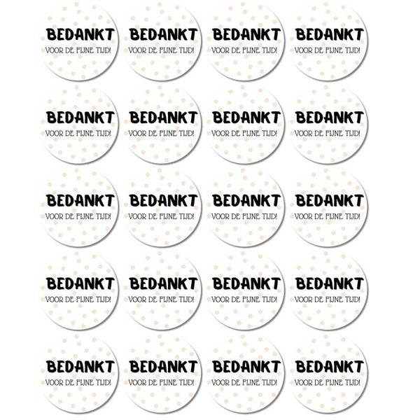 Afscheidsstickers | Bedankt voor de fijne tijd | roze stippen | stickervel 20 stuks