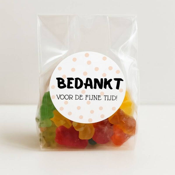 Afscheid nemen hoeft niet ingewikkeld te zijn. Een klein gebaar zegt vaak al genoeg. Deze lieve stickers met de tekst “Bedankt voor de fijne tijd!” zijn perfect voor een afscheid op school, het kinderdagverblijf, stage, werk of vrijwilligerswerk.