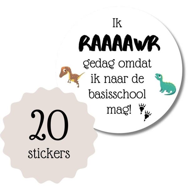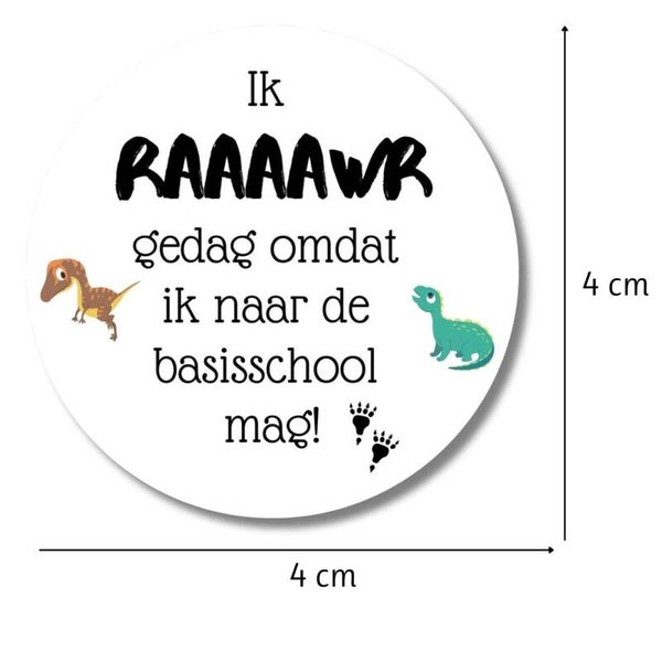 Is je kind bijna vier jaar en mag het naar de basisschool? Dan is afscheid nemen bij de opvang of peuterspeelzaal een speciaal moment. Deze vrolijke stickers met de tekst “Ik raaaawr gedag omdat ik naar de basisschool mag!” maken het feestelijk én stoer tegelijk.