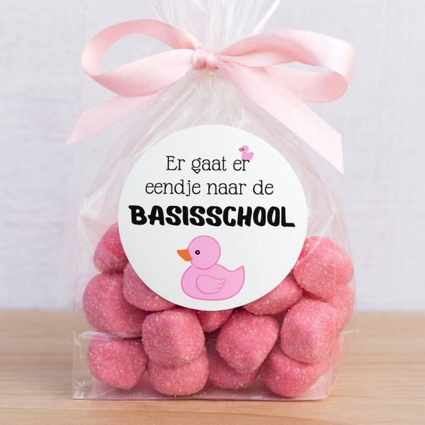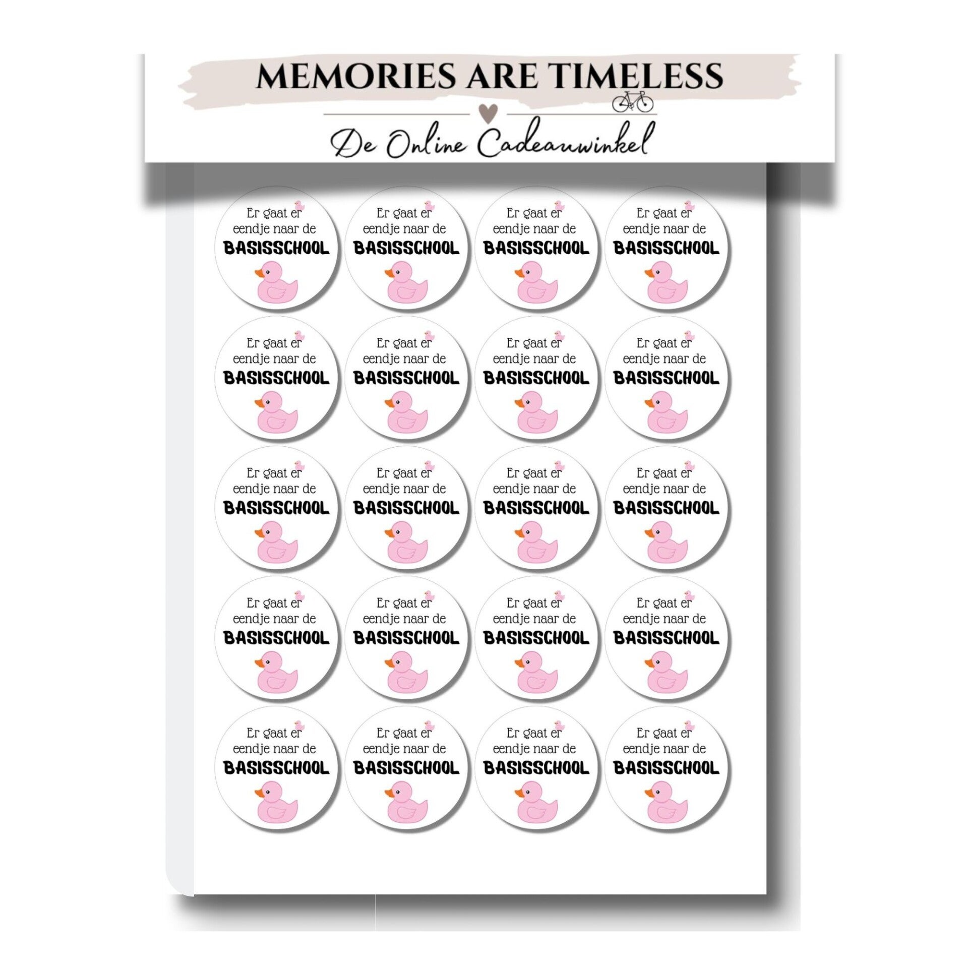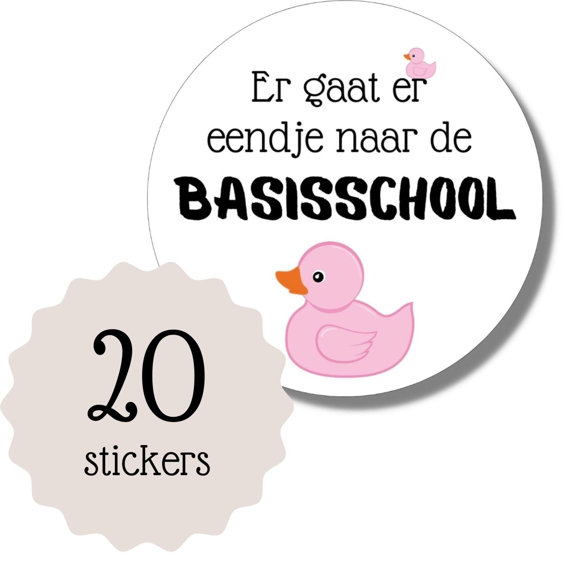 Roze eendje afscheid stickers | Er gaat er eendje naar de basisschool | 20 stuks