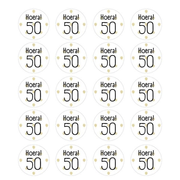 Een witte sticker met daarop in zwarte letters de tekst Hoera! 50. Met een cadeausticker geef je je cadeautje eenvoudig een extra feestelijk tintje of een persoonlijke touch! Het gebruik van cadeau en sluitstickers is weer helemaal terug!