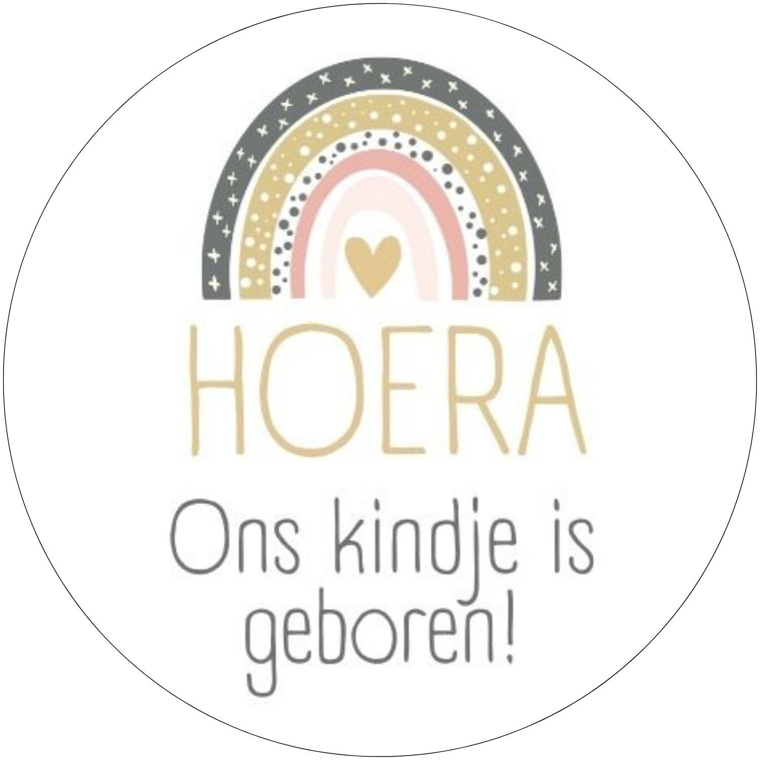 Hoera Ons Kindje Is Geboren! Maak bijvoorbeeld de enveloppe van het geboortekaartje compleet met deze set van 20 sluitstickers! Een ronde witte sticker bedrukt met de tekst "Hoera Ons Kindje Is Geboren!" met een regenboog en feestelijke kleuren. Met een cadeausticker geef je je cadeautje of traktatie eenvoudig een extra feestelijk tintje of een persoonlijke touch! Het gebruik van cadeau en sluitstickers is weer helemaal terug! Gebruik de sticker op een cadeautje of om een envelop af te sluiten.