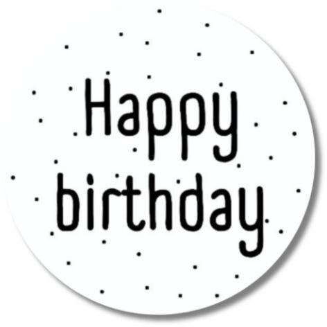 Maak je cadeau, uitnodiging of trakatie compleet met deze set van 20 cadeaustickers! De stickers zijn ronde witte stickers. Op de stickers is de tekst: Happy Birthdaygedrukt.