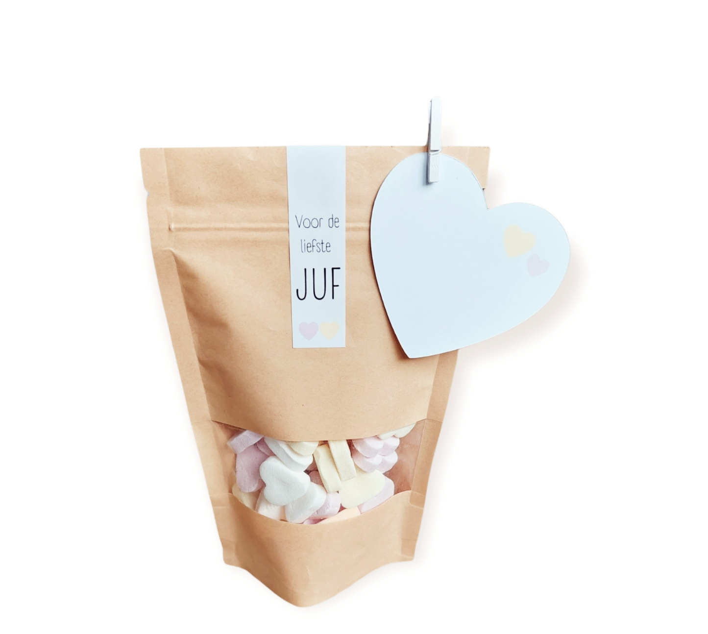 Daarnaast ontvang je een schattig hartvormig kaartje om een persoonlijke boodschap op te schrijven. Een eenvoudig, lief bedankje dat perfect is voor het einde van het schooljaar.