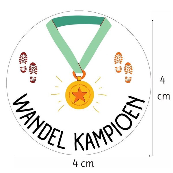 Ben of ken jij iemand die de uitdaging aangaat? De avond vierdaagse of de Vierdaagse in Nijmegen wandelen is natuurlijk een prestatie! Een leuke beloning is een sticker met de afbeelding van een medaille, voetafdrukken en de tekst "Wandel Kampioen"! Want echte kampioenen dat zijn het...