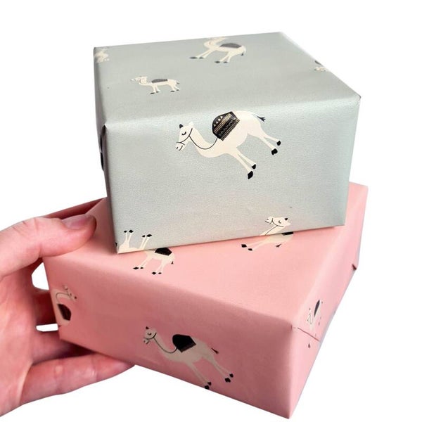 Wat een leuk en stevig dubbelzijdig cadeaupapier! Dit inpakpapier is natuurlijk voor meerdere gelegenheden te gebruiken, bijvoorbeeld een verjaardag voor een kind of een ander leuke feestgelegenheid! Van die leuke kamelen wordt toch iedereen blij!