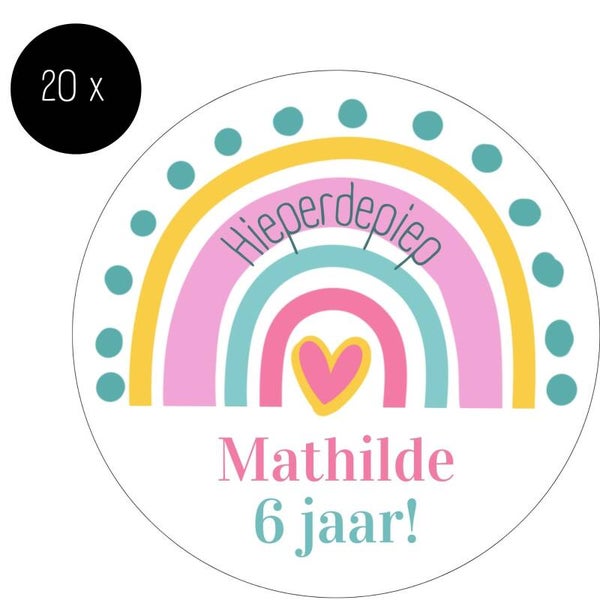 Gepersonaliseerde Stickers | Regenboog | Naam en leeftijd van de jarige