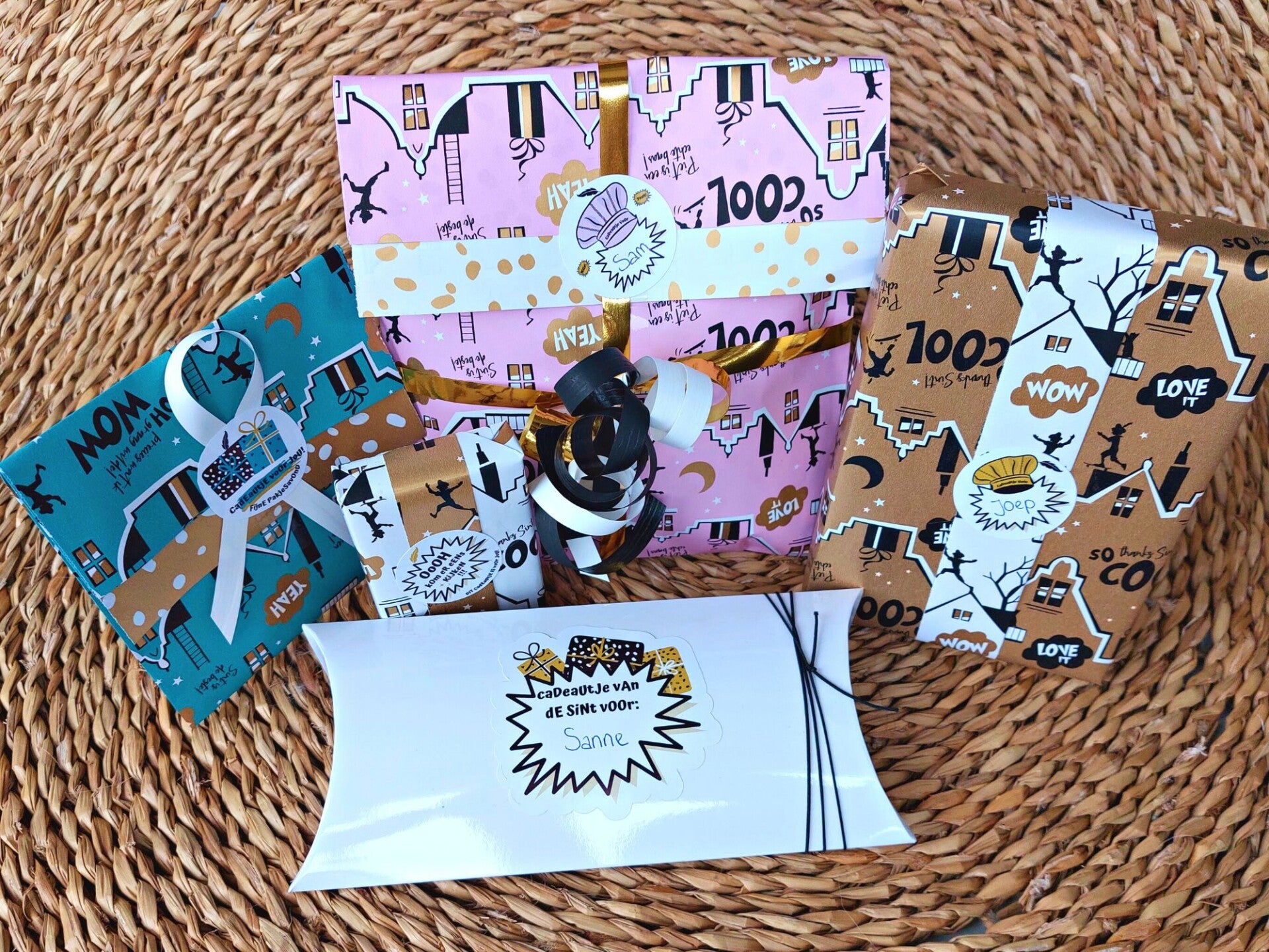Tip! Maak er één groot Sinterklaasfeest van met deze bijpassende goud zwarte cadeauzakjes! Shop dit cadeaupapier ook in de kleuren wit goud, blauw groen goud én roze lila goud!