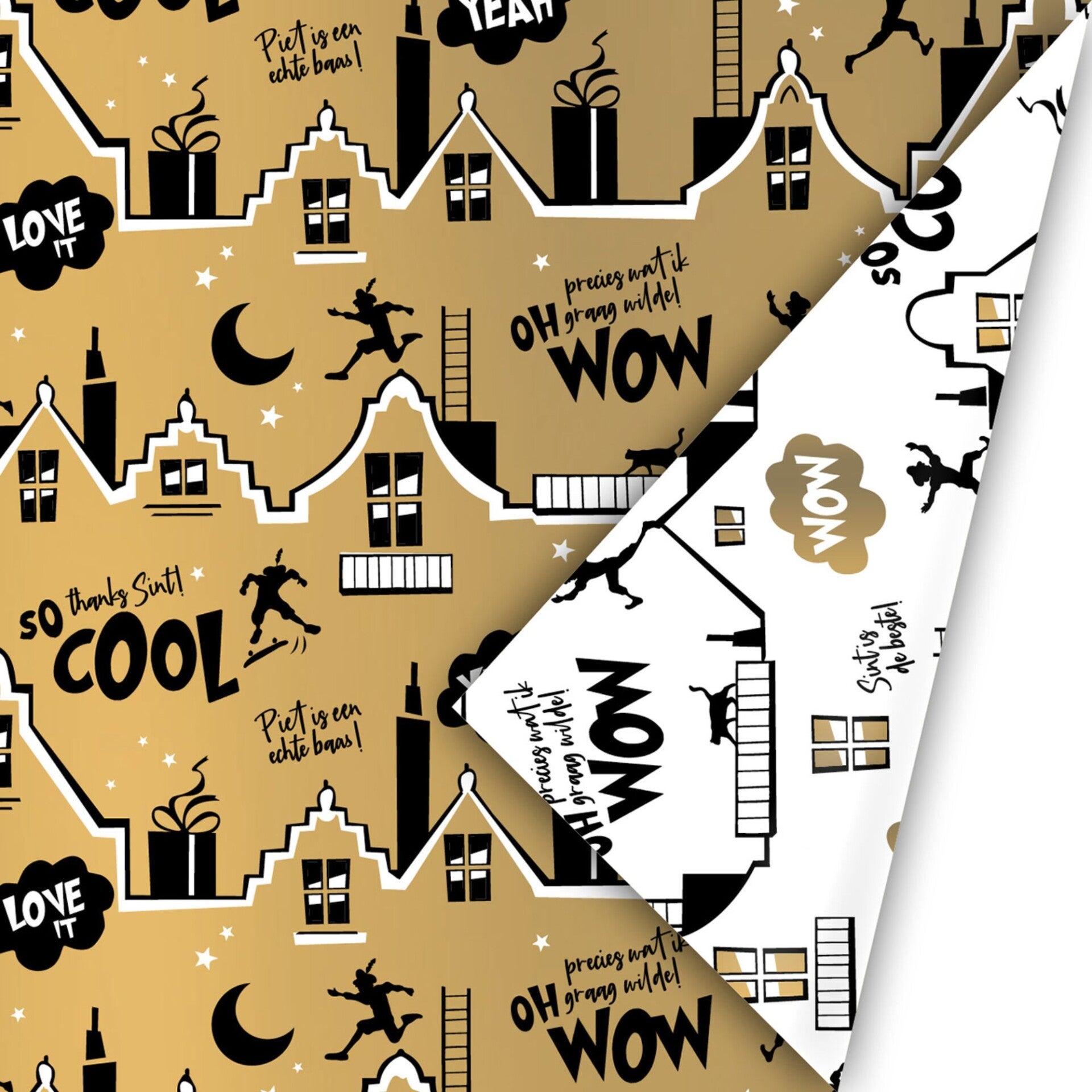 Sinterklaas | Cadeaupapier | Inpakpapier | Goud Zwart Wit