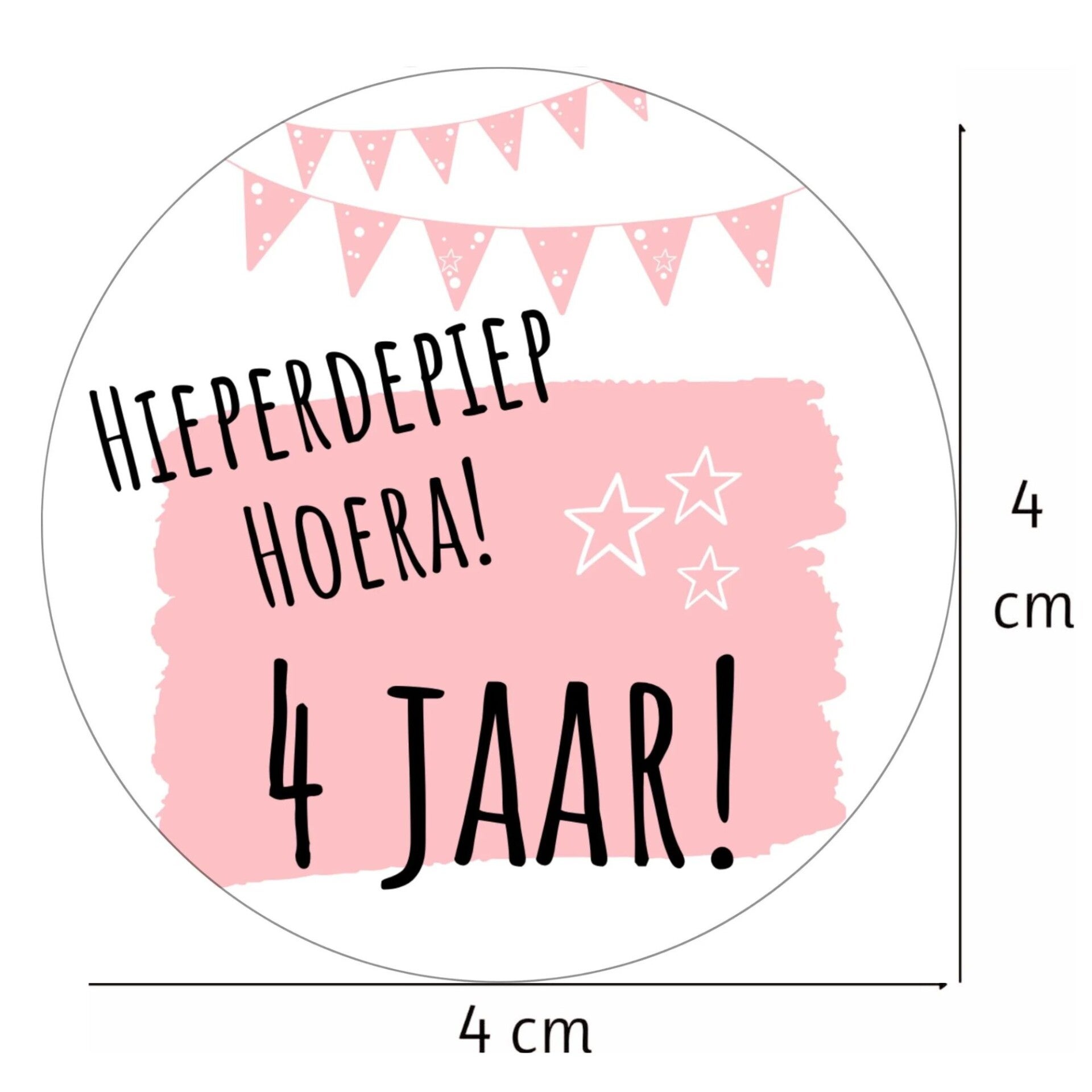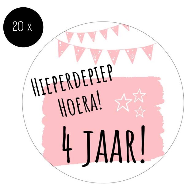 Stickers | Hieperdepiep Hoera 4 jaar | Roze | 20 Stuks