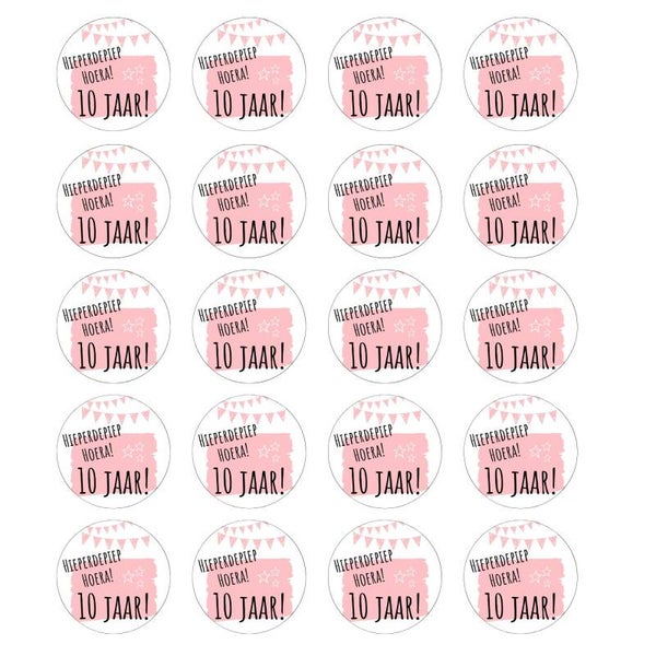 Stickers | Hieperdepiep Hoera 10 jaar | Roze | 20 Stuks