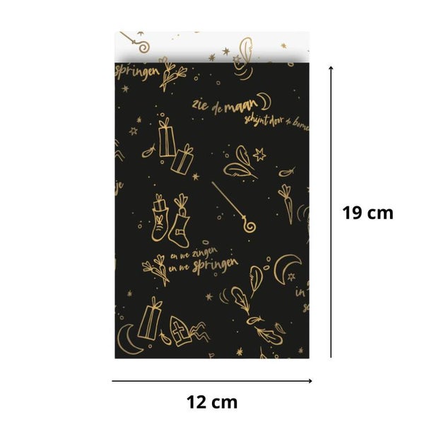 "Zie de maan schijnt door de bomen", "en we springen en we zingen".... Zingen doen we luidkeels in deze Sinterklaasperiode! Deze cadeauzakjes zijn bedrukt met de teksten van de bekendste Sinterklaasliedjes en ontzettend handig voor het inpakken van de kleinere cadeautjes.