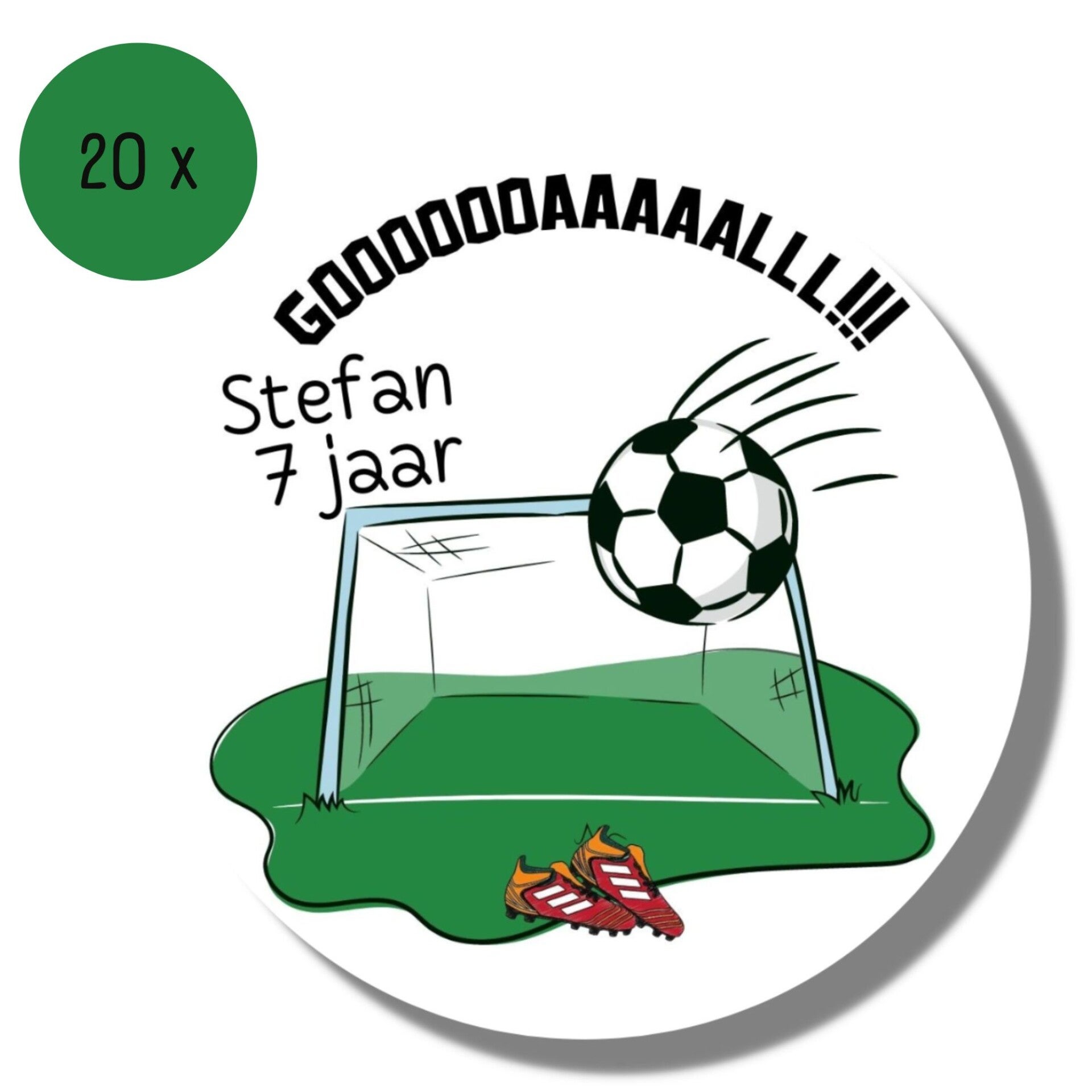 Gooooooaaaaalll!! Is je kind bijna jarig en wil je gaan trakteren? Is hij of zij helemaal gek van voetbal? De topscorer van het team of juist degene die zorgt dat de tegenpartij niet scoort? Dan zijn deze gepersonaliseerde stickers met de naam en leeftijd van je kind perfect!